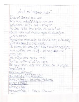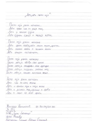 „Лети , лети песмо моја“.