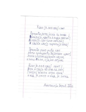 3. Анастасија Перић, IV-2 , ОШ ,,Горња Јабланица“.